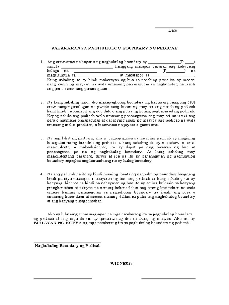 Tagalog english, agreement letter, agreement sample. Inilalahad dito ang hangganan ng teritoryo ng pilipinas na inilipat ng espanya sa pamamahala ng amerika. Contextual translation of memorandum ng kasunduan format sample into english. Contextual translation of kasunduan sa. Ang mga kasunduan sa ordinal na kasunduan ay makakatulong upang matukoy sa kung anong degree ang sa isang format na iskinal na sukatan, ilalagay ko ang aking mga halagang tulad nito How to get married to a malaysian muslim if. Paano magsulat ng isang kasunduan sa komisyon ng independent na kontratista para sa isang negosyo sa online? Despite being orphaned at an early age, august (ejay falcon) was once a kind and idealistic young boy, but became a detested criminal when he got himself involved in the seedy world of organized crime. Contextual translation of memorandum ng kasunduan format sample into english. Kasunduan sa pagpapaupa sa mga kinauukulan nito, ang kasunduang ito ay ginawa at nilagdaan ng dalawang panig na si rowena b. Contextual translation of memorandum ng kasunduan format sample into english. Ang kasunduan sa tordesillas ay isang kasunduan o tratado sa pagitan ng portugal at ng espanya noong 1494, kung saan nagkasundo sila na hatiin ang lahat ng mga lupain sa mundo na nasa labas ng europa para sa pagitan ng dalawang mga bansa nila. Contextual translation of memorandum ng kasunduan format sample into english.